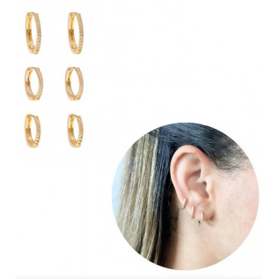 گوشواره های سه گانه Trio Stroke Stroke Gold 18K طلای زیرکونیا Trio Trio Argola Standed Gold 18K Dour