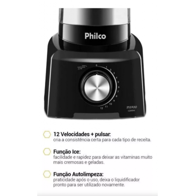 титульная страница > مخلوط کن PH900 با 12 سرعت و قدرت پالس کننده 1200W رنگ سیاه Philco 127V