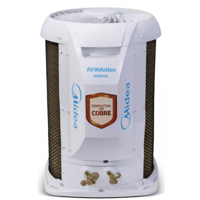 درlém da serpentina de cobre, material ultrarresistente e de grande condutibilidade térmica, a unidade externa vem equipada GOLD FIN®, uma proteção extra contra corrosão.