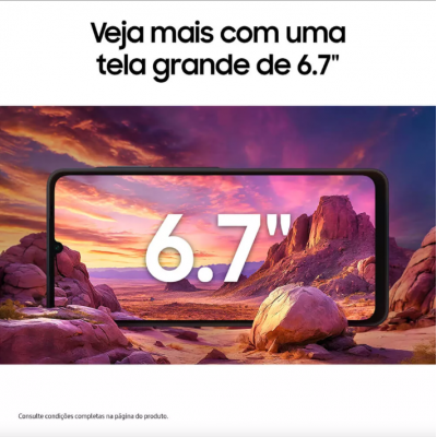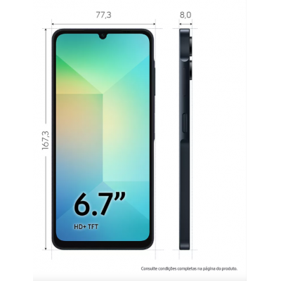 Celular Samsung Galaxy A06 com tela de 6.7", 128GB, 4GB de RAM, Câmera Traseira de 50MP, Câmera Frontal de 8MP, Bateria de 5000mAh, Dual Chip, Android